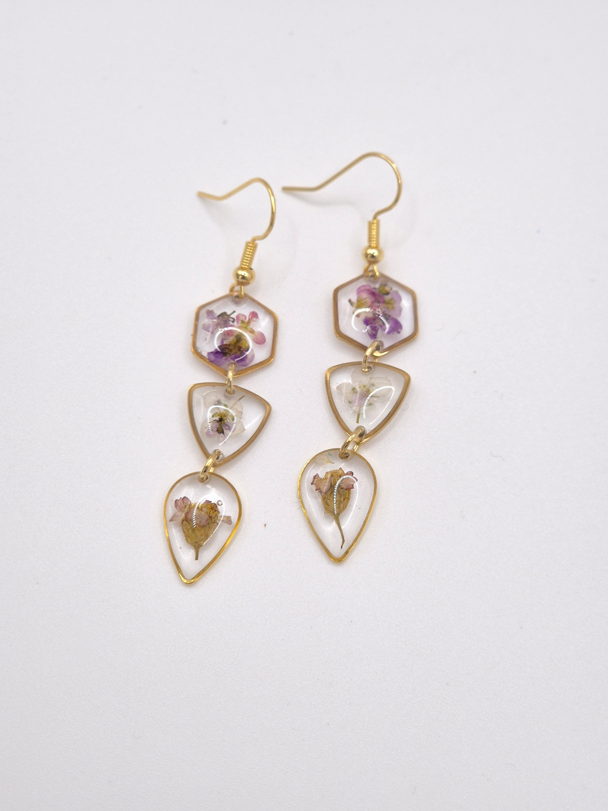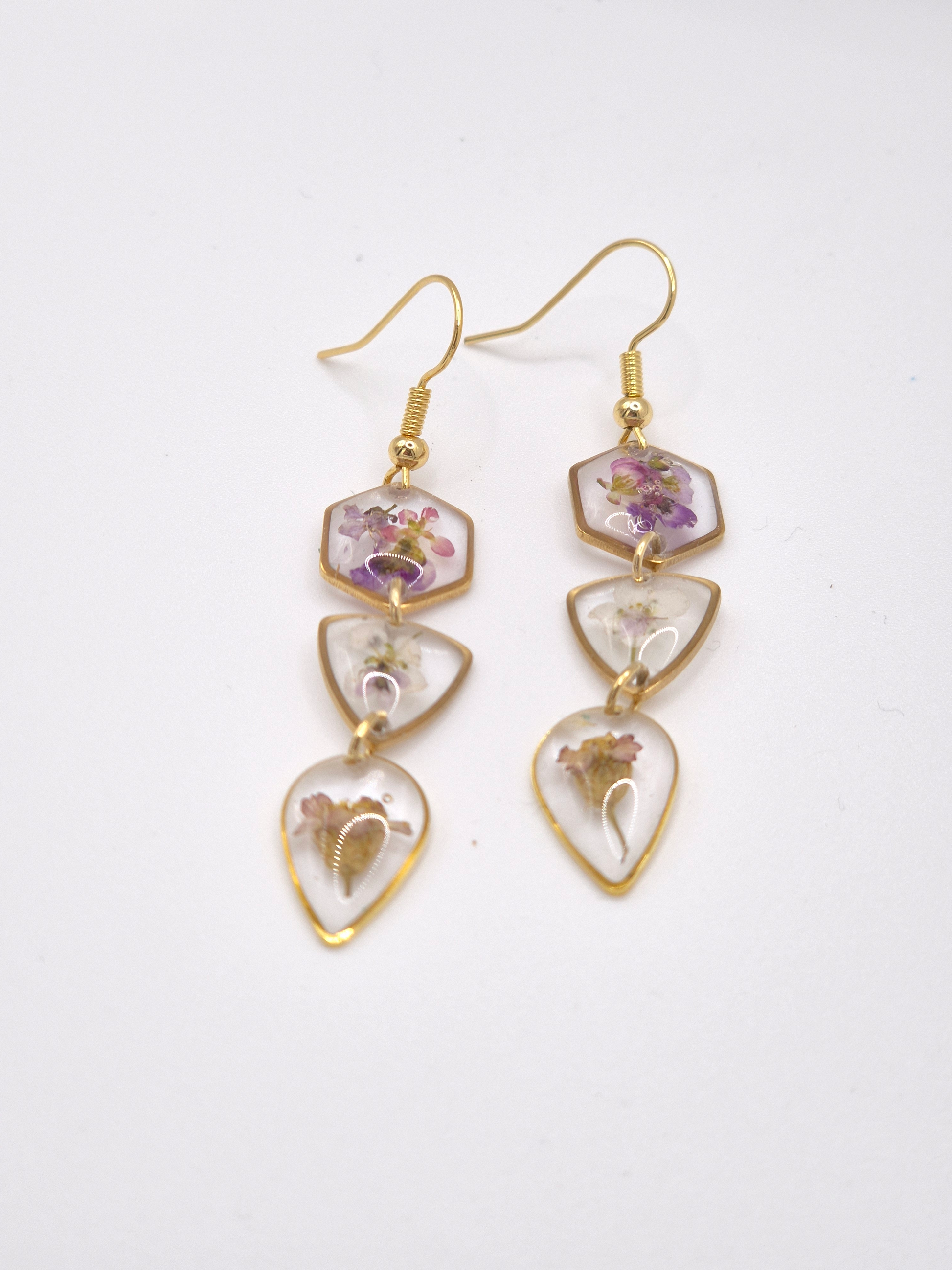 These Alyssum flowers set in various shaped bezels with an 18k Gold Plated hook and finished with a unique style.