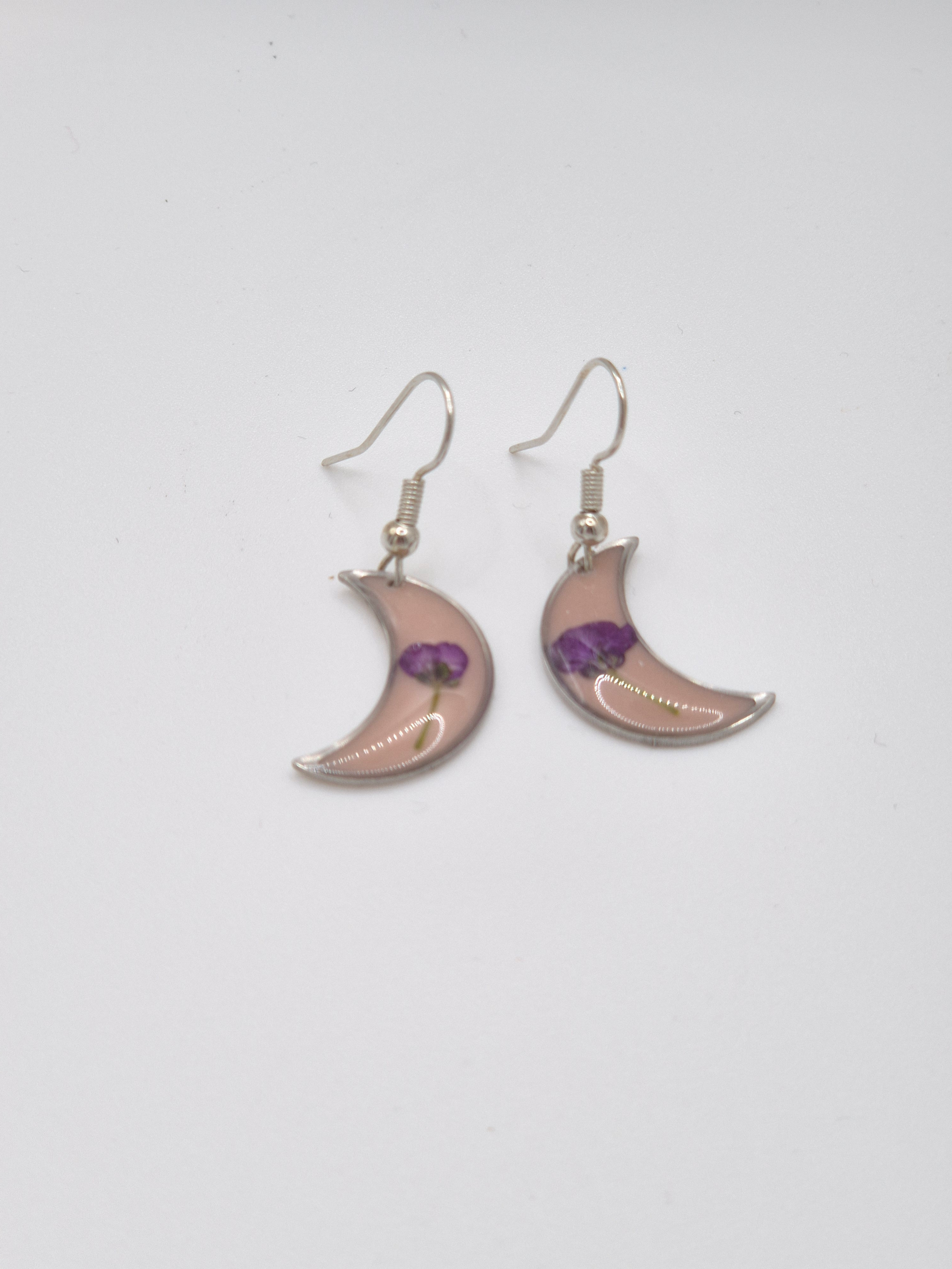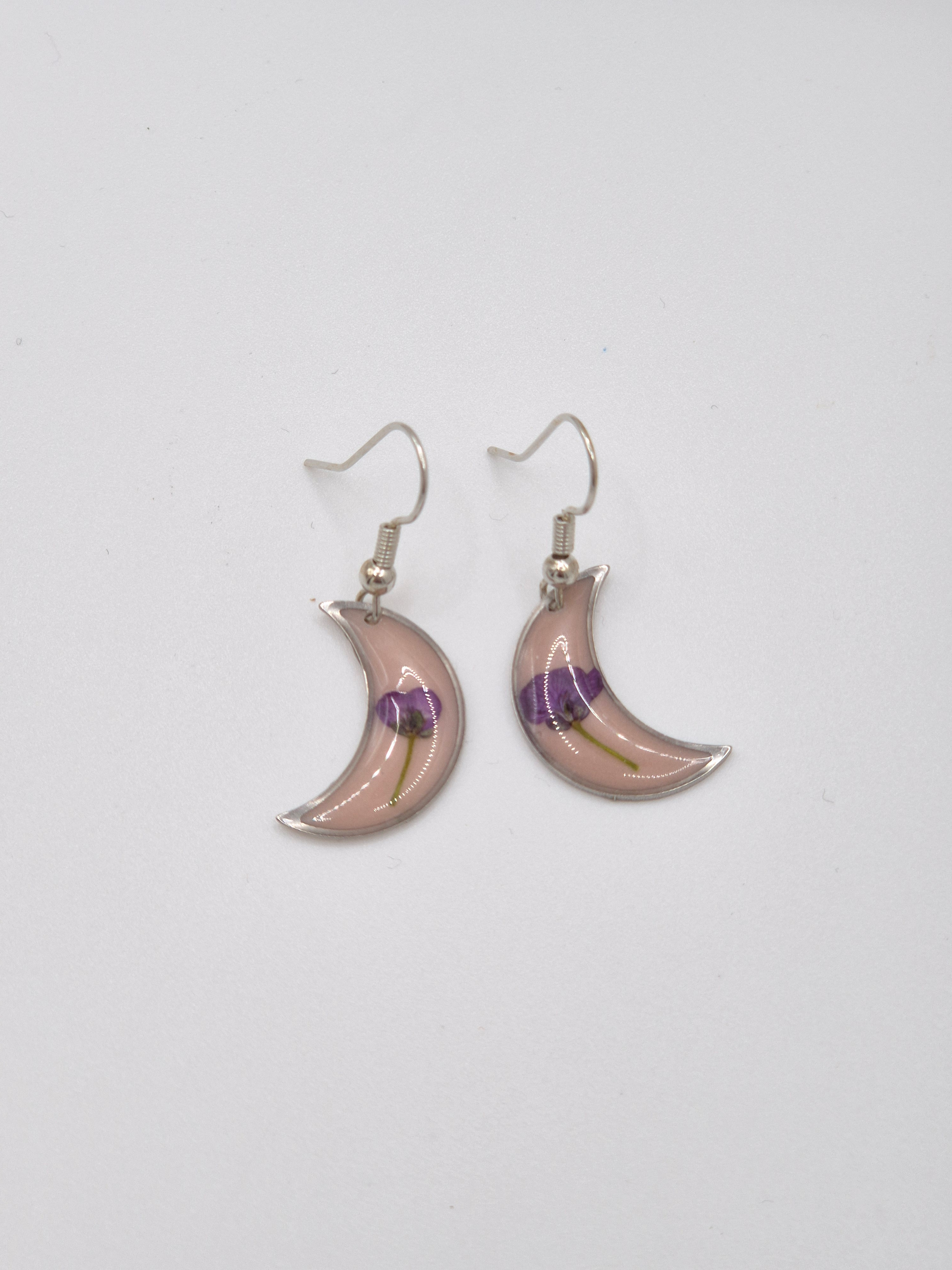 These Alyssum flowers set in cresent moon shaped bezels with an 18k Gold Plated hook and finished with a unique style.