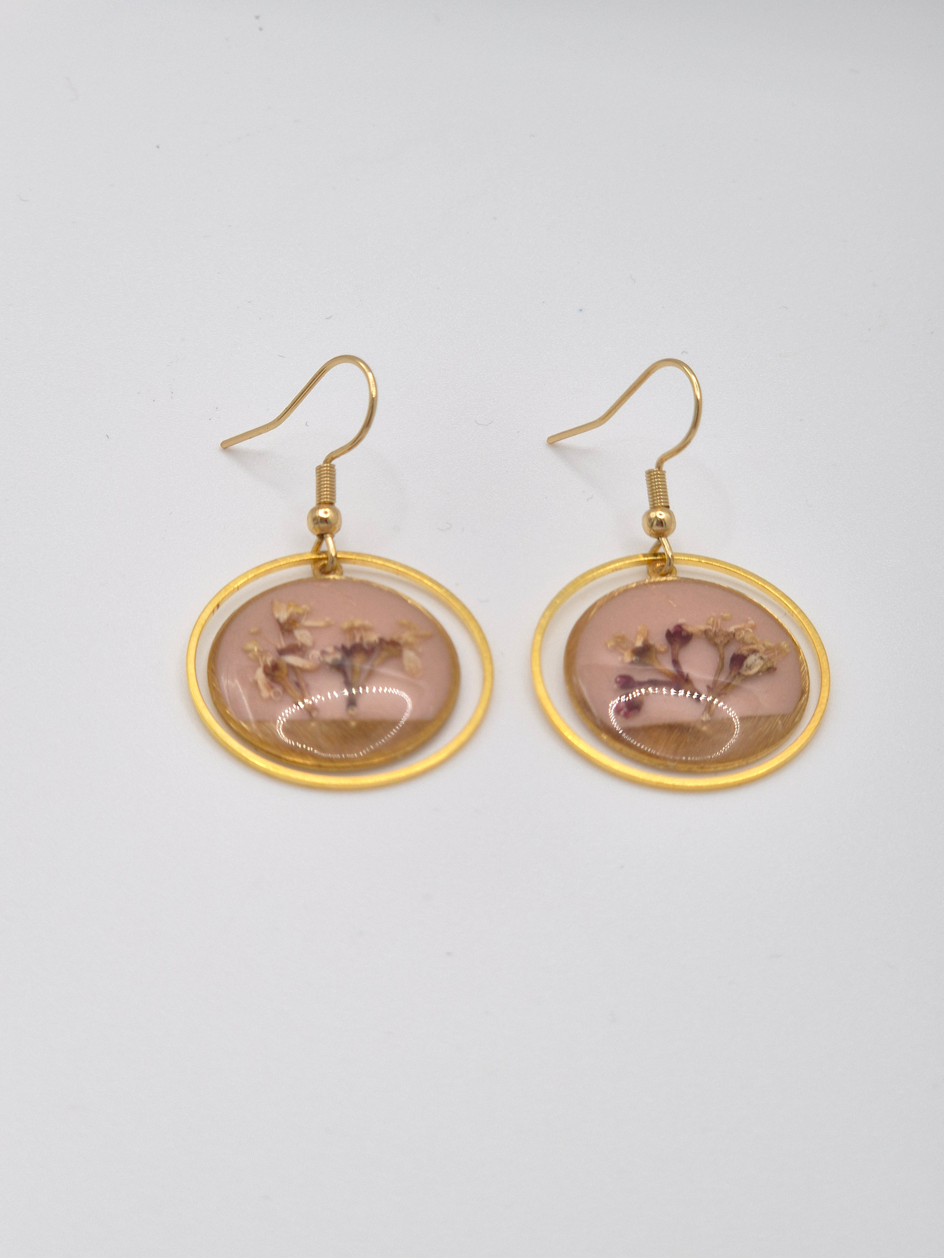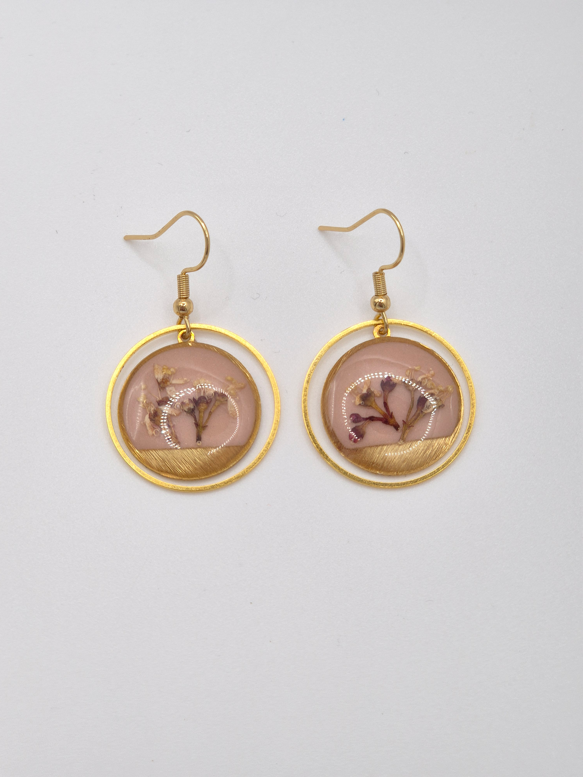 These Laurustinus flowers set in circular shaped bezels with an 18k Gold Plated hook and finished with a unique style.